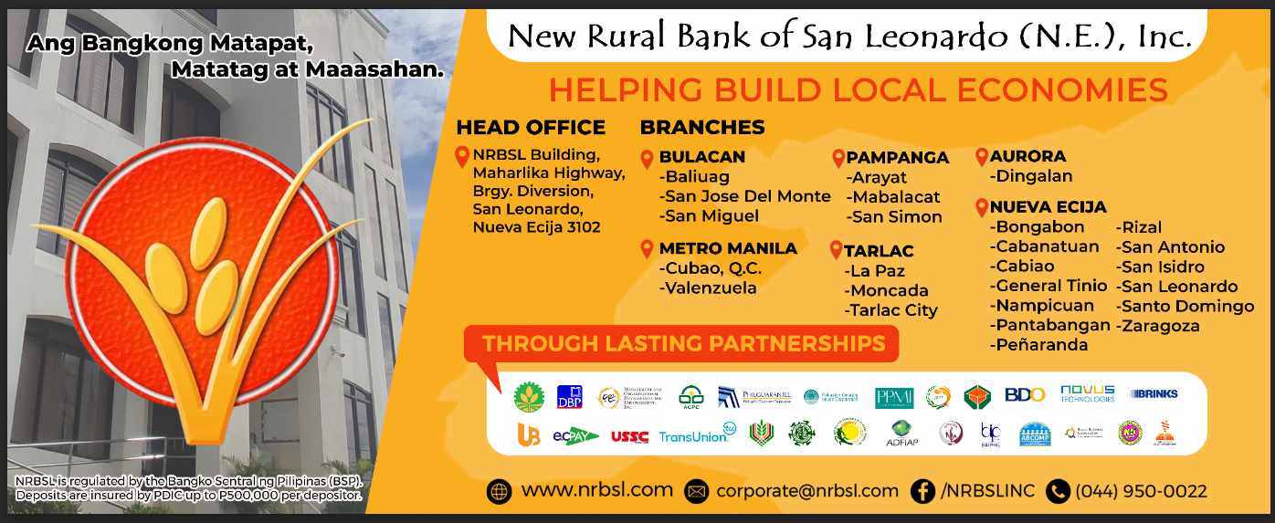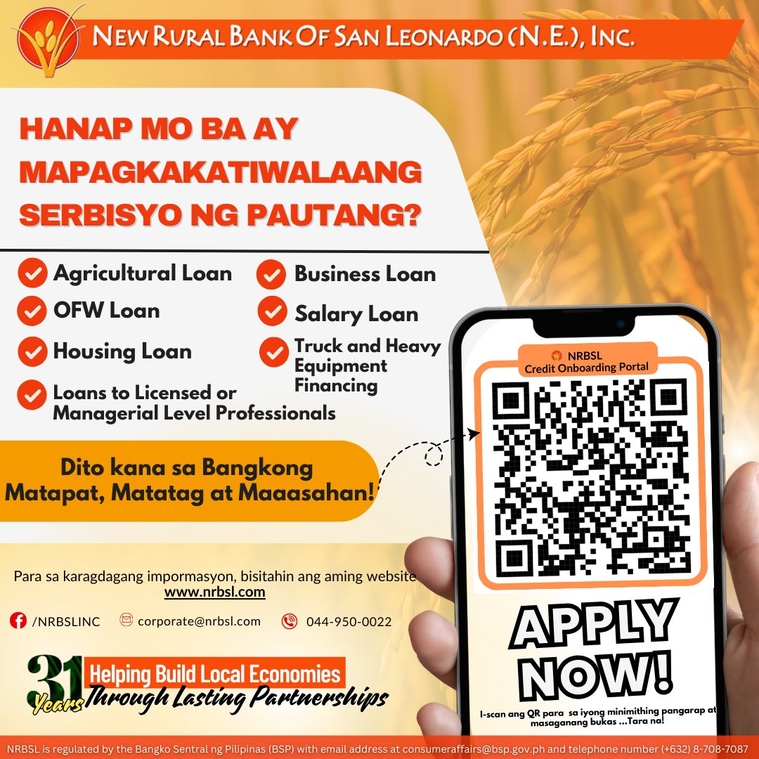 The New Rural Bank of San Leonardo, Inc. has been honored as the Outstanding Rural Financial Institution (Bank) during the Regional Gawad Saka 2025, held on May 15, 2025 at Subic Bay Travellers hotel, Subic, Zambales with the theme “Parangal sa Natatanging Magsasaka at Mangingisda ng Gitnang Luzon”. The Gawad Saka Awards, spearheaded by the Department of Agriculture, celebrate individuals and institutions that have made significant steps in improving agriculture and fisheries in the country. NRBSL stood out among its peers for its innovative financial services, community programs, and sustainable development initiatives designed to uplift rural areas.See More.....