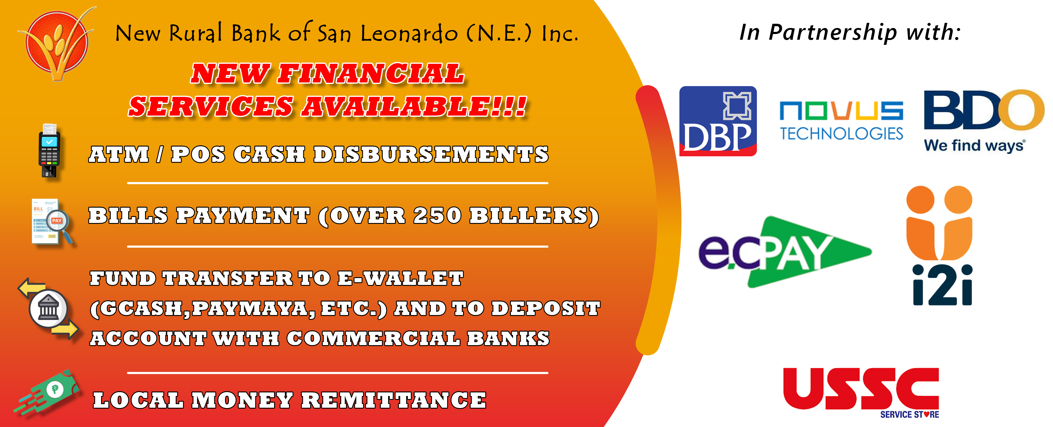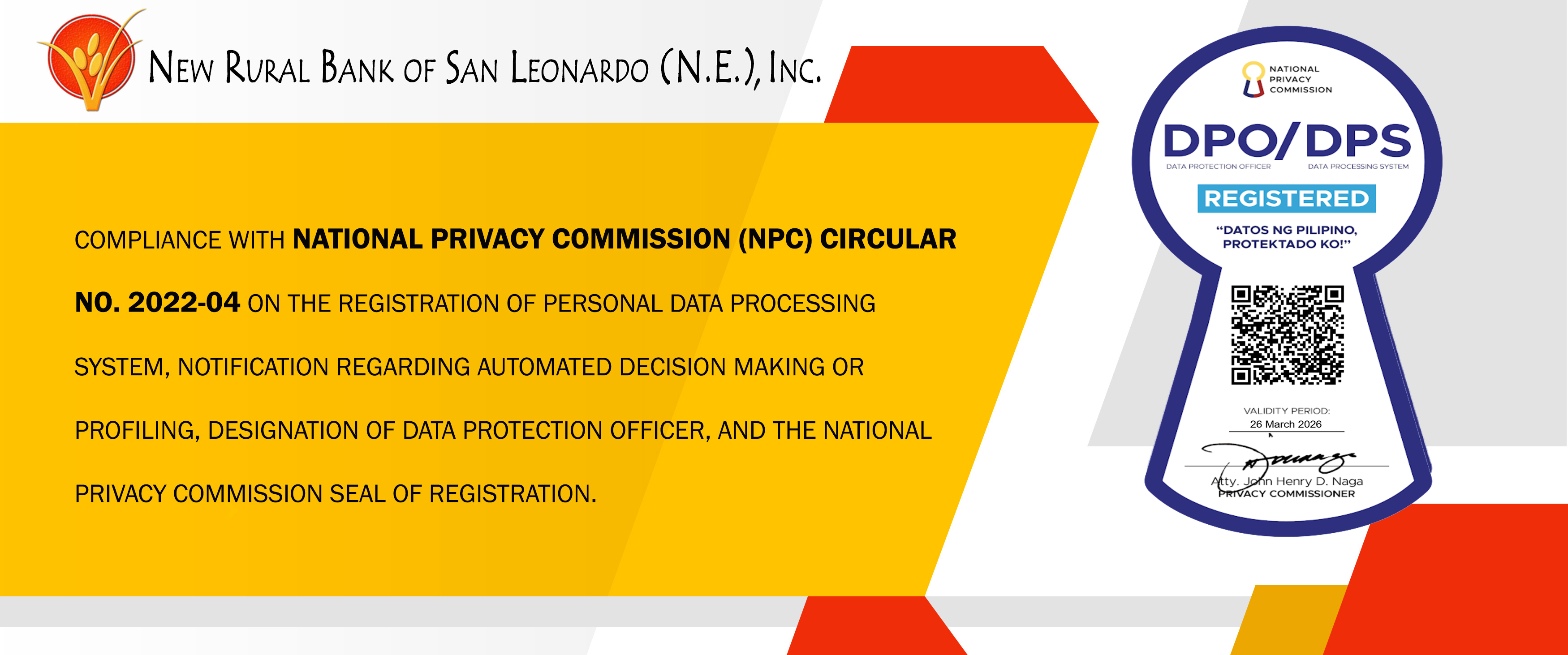 The New Rural Bank of San Leonardo (NRBSL) provides information in this website solely as a resource for its users. While NRBSL tries to provide high quality content on its website, it does not guarantee the accuracy, reliability or timeliness of the information and, therefore, will not be liable for any damages or losses to the user that may result from the use of the website.
