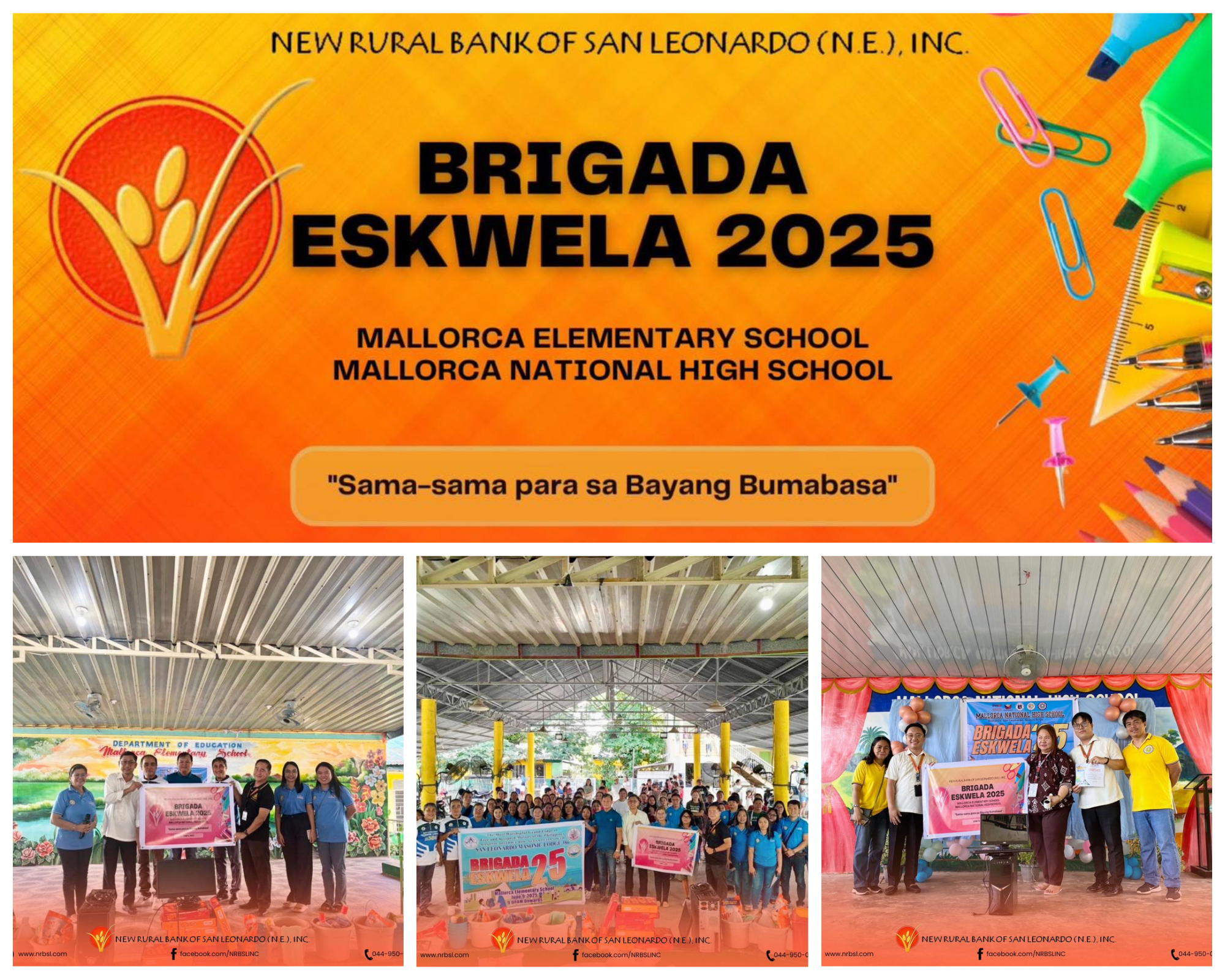 The New Rural Bank of San Leonardo (N.E) Inc., joins the kick off ceremony of Brigada Eskwela 2025 with the theme “Brigada Eskwela: Sama-sama Para sa Bayang Bumabasa” at Mallorca National High School and Mallorca Elementary School last June 9, 2025. This program marked the start of a week-long preparation of classrooms and the school for the learners, as the Department of Education formally kicks off the School Year 2025–2026. It reflects a shared commitment to provide learners with clean, safe, and functional learning spaces.See More.....