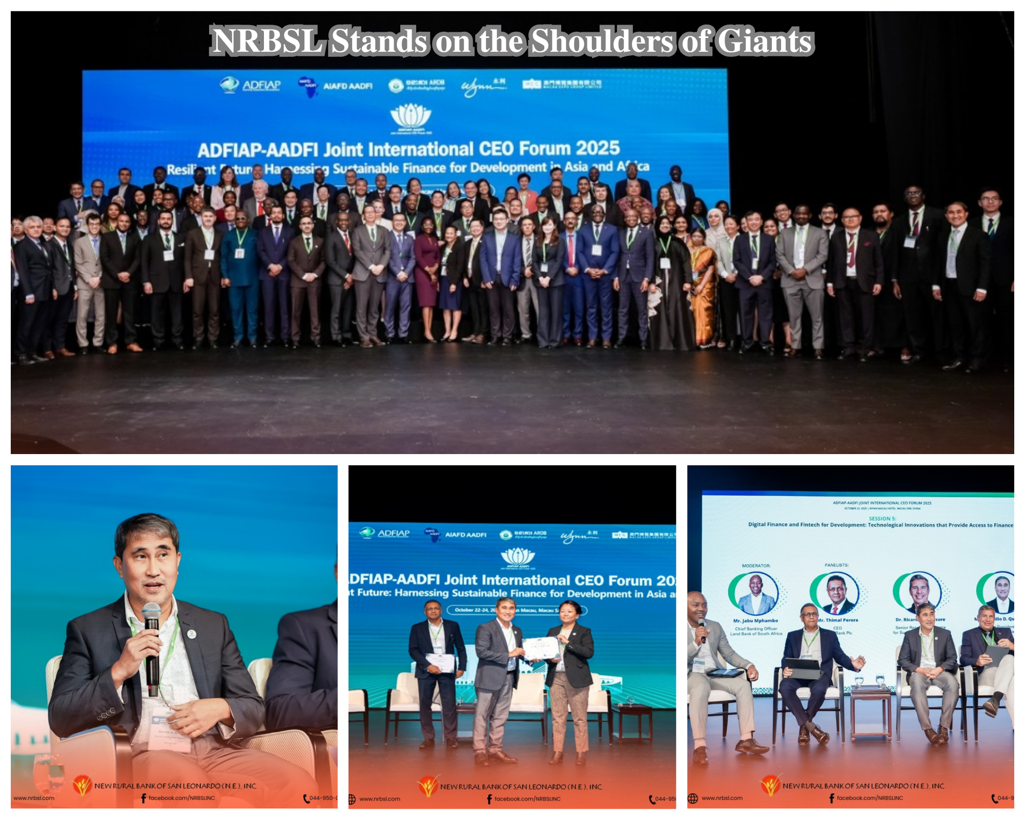 The New Rural Bank of San Leonardo (NRBSL) proudly took part in the Joint CEO Forum of the Association of Development Financing Institutions in Asia and the Pacific (ADFIAP) and the African Association of Development Financial Institutions (AADFI) held in Macau, China, on October 22–25, 2025. See More.....