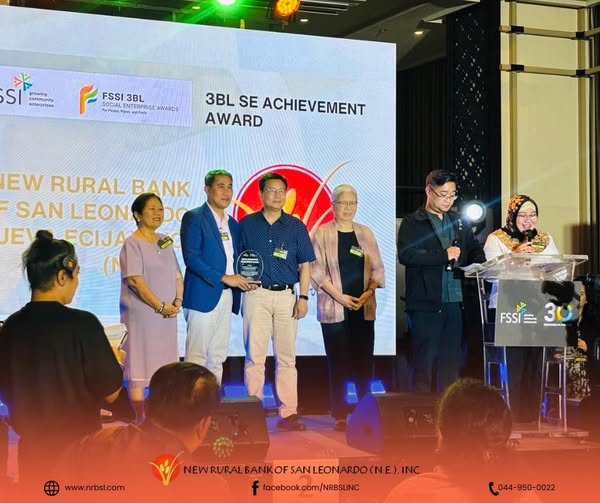 The New Rural Bank of San Leonardo has proven anew its unwavering commitment to inclusive growth and sustainable development as it received FSSI’s “Kaunlaran para sa Kapwa at Komunidad Social Equity and Community Development Award”and the “3BL Achievement Award”. These honors, conferred by the Foundation during its 30th Anniversary at Seda Vertis North on September 5,2025.See More.....
