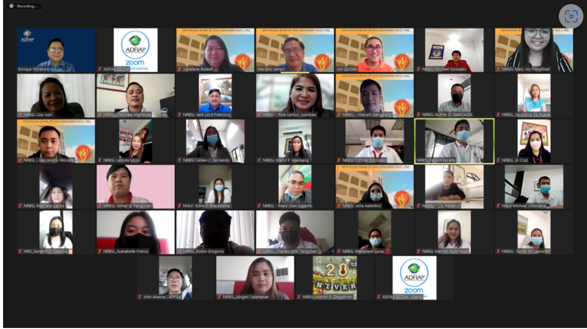 ADFIAP’s Secretary-General, Mr. Enrique Florencio, briefed the Bank’s key officers virtually on June 30, 2022, on recent trends in international business reporting using the Global Reporting Initiative (GRI) framework and its guidelines, and on the processes in preparing such a report, at the request of the Nueva Ecija-based member, New Rural Bank of San Leonardo.