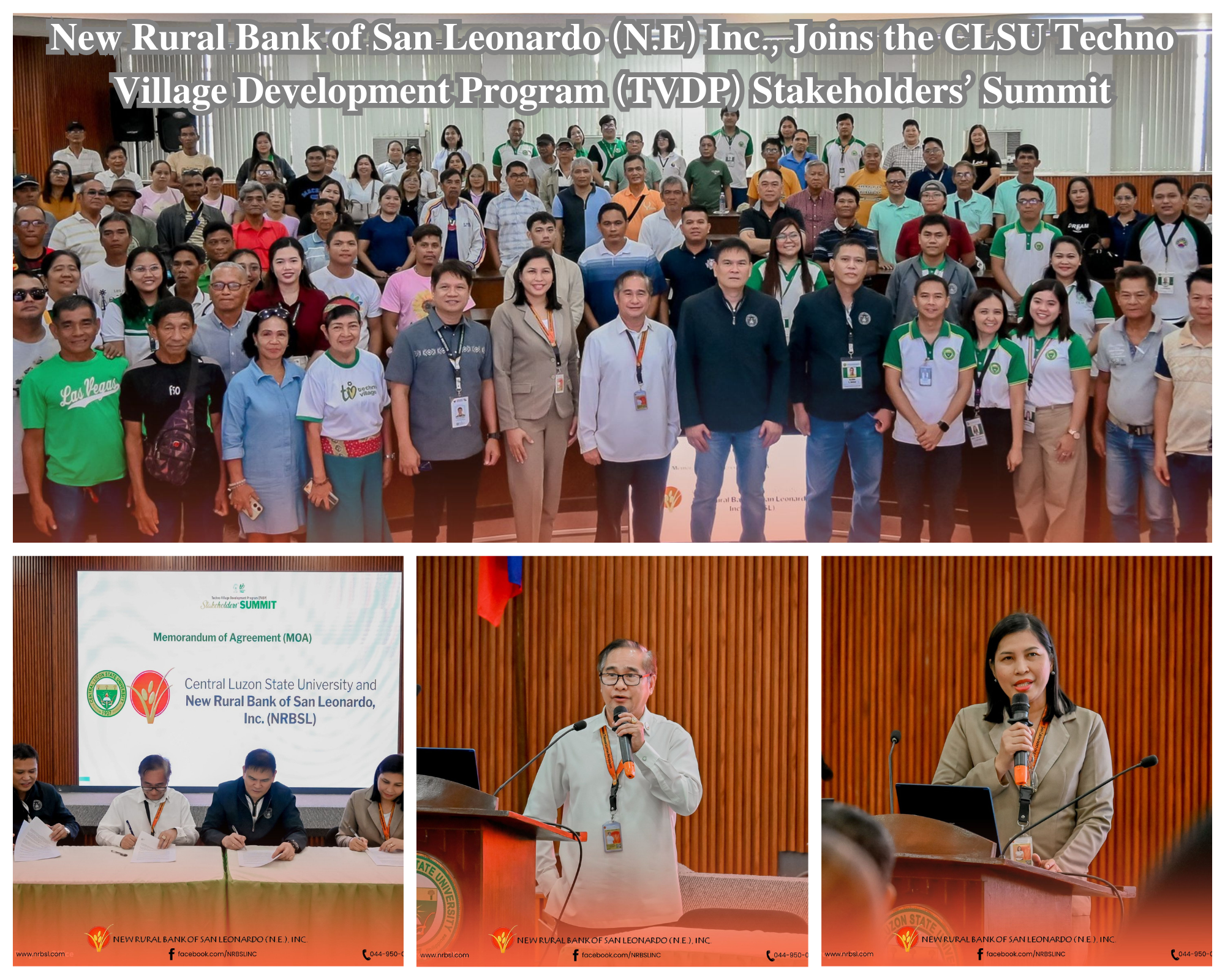 The New Rural Bank of San Leonardo, Inc. has been honored as the Outstanding Rural Financial Institution (Bank) during the Regional Gawad Saka 2025, held on May 15, 2025 at Subic Bay Travellers hotel, Subic, Zambales with the theme "Parangal sa Natatanging Magsasaka at Mangingisda ng Gitnang Luzon".