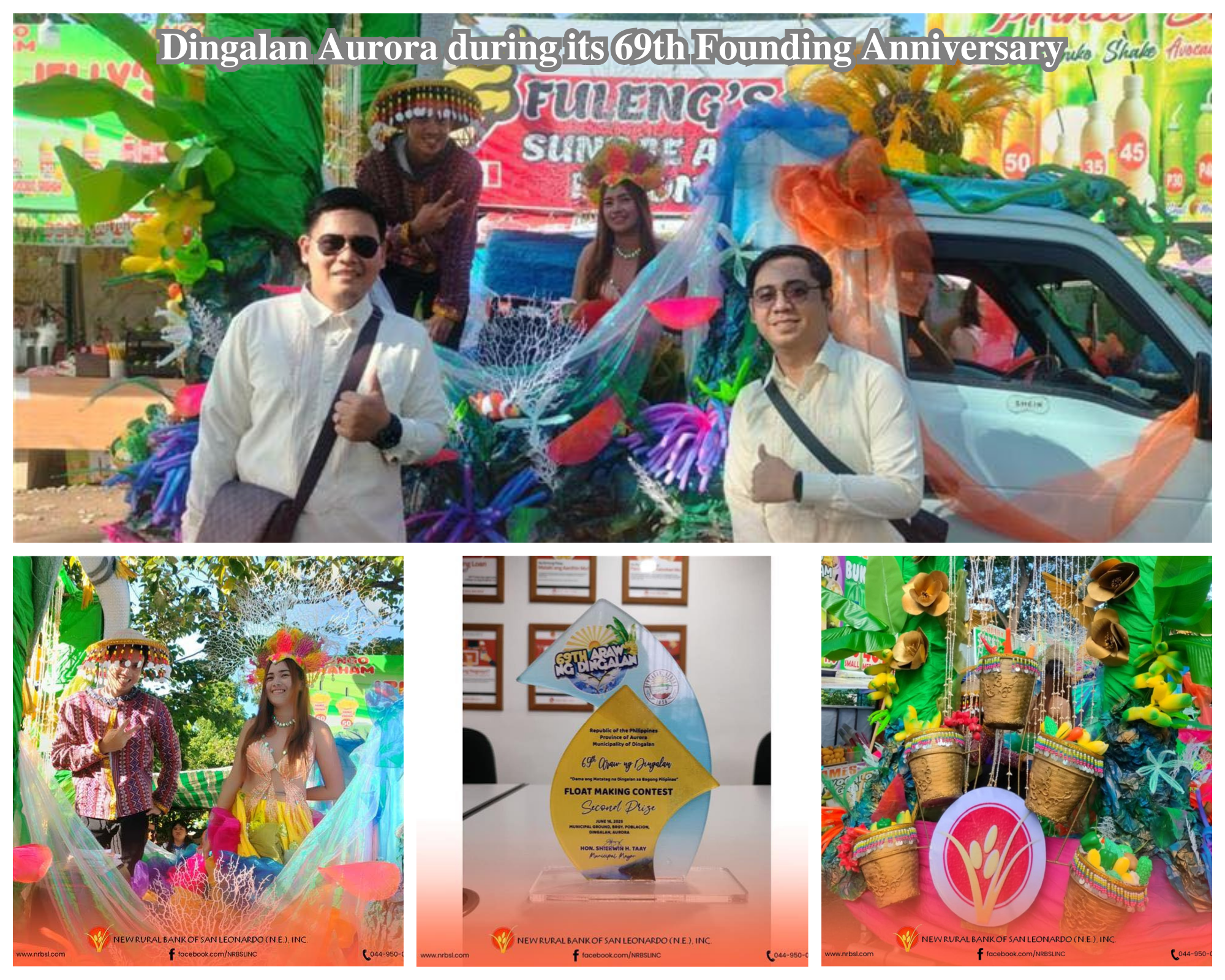 The New Rural Bank of San Leonardo (N.E.), In., Dingalan Branch proudly participated in the vibrant Float Competition in celebration of the 69th Founding Anniversary of the Municipality of Dingalan, Aurora, under the theme "Dama ang Matatag na Dingalan sa Bagong Pilipinas."