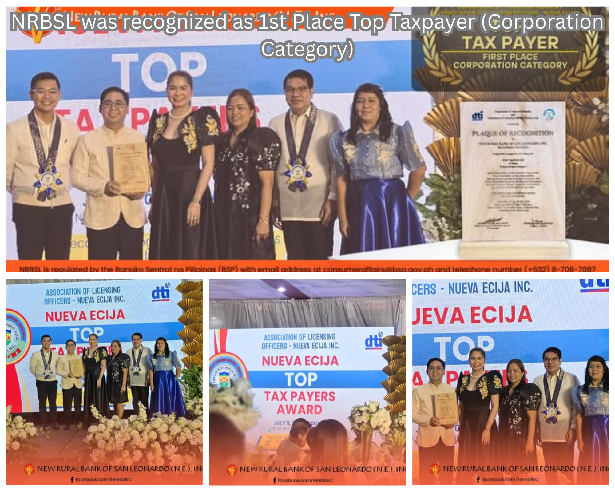 IN PHOTOS | New Rural Bank of San Leonardo (N.E.), Inc. was recognized as 1st Place Top Taxpayer (Corporation Category) in the municipality of San Leonardo by the Department of Trade and Industry (DTI) and the Association of Licensing Officers - Nueva Ecija, during the MSME Week Celebration today July 11,2025 held at the NEUST Convention Center, Sumacab Este, Cabanatuan City.
