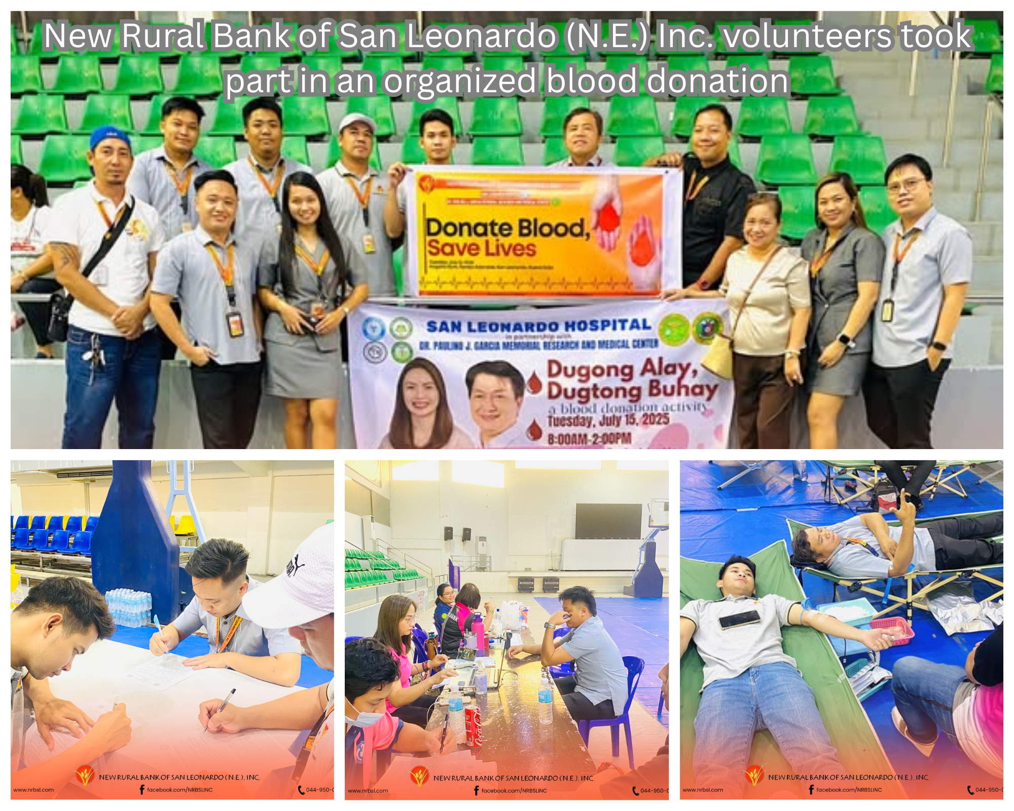 LOOK: New Rural Bank of San Leonardo (N.E.) Inc. volunteers took part in an organized blood donation drive by San Leonardo Hospital and the Dr. Paulino J. Garcia Research and Medical Center on Tuesday, July 15, 2025, at Nagaño Gymnasium, Tambo Adorable, San Leonardo,Nueva Ecija.