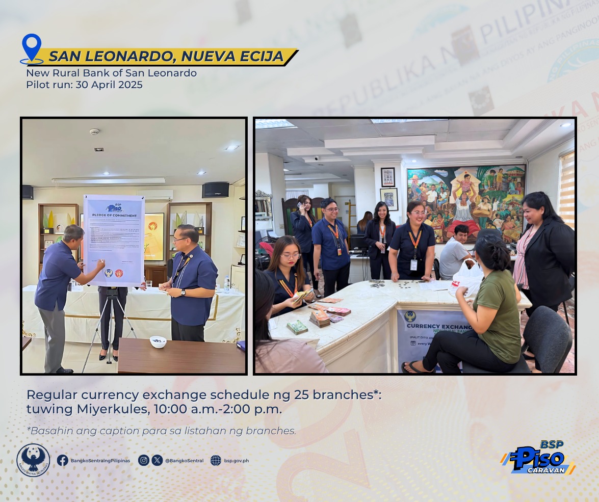 Para sa BSP-supervised financial institutions na nais makibahagi sa Piso Caravan Program, makipag-ugnayan sa pinakamalapit na BSP regional office o branch sa inyong lugar. Listahan ng BSP regional offices at branches: https://bit.ly/robbsp